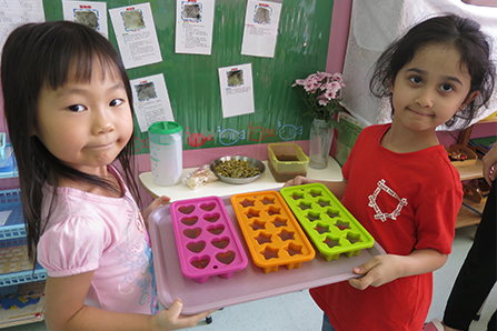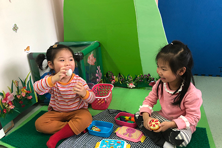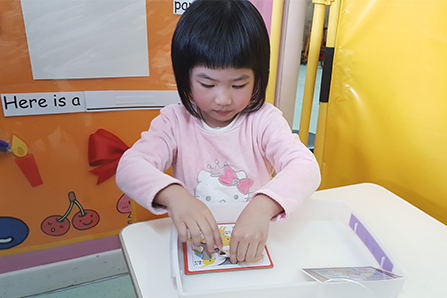 In language learning, we promote “Learning from play” in the school curriculum, which we designed a variety of play activities to children in order to facilitating their learning in a harmony learning environment. The activities are as follows: