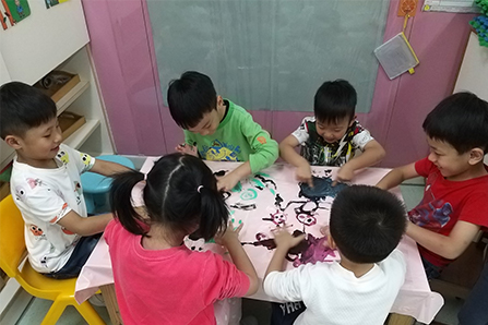 Children learn different Chinese characters through 5 senses (Seeing, smelling, touching, hearing and tasting), to arouse their learning motivation and gain their interests in learning Chinese that are meaningful to themSmall Group Activity